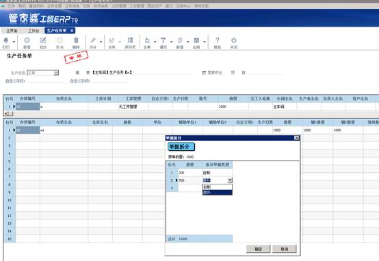 生產任務單可以拆分成自制(生產任務單)和委外(委外加工單)